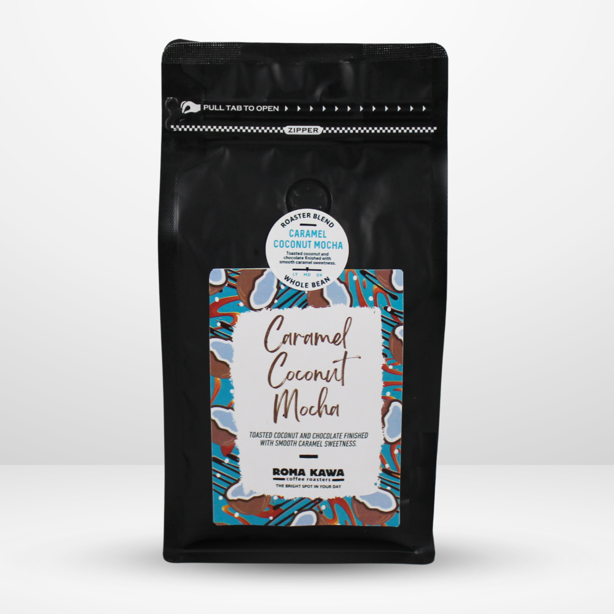 CARAMEL COCONUT MOCHA: Toasted coconut and chocolate finished with smooth caramel sweetness. A rich, indulgent blend with a creamy, dessert-style balance.