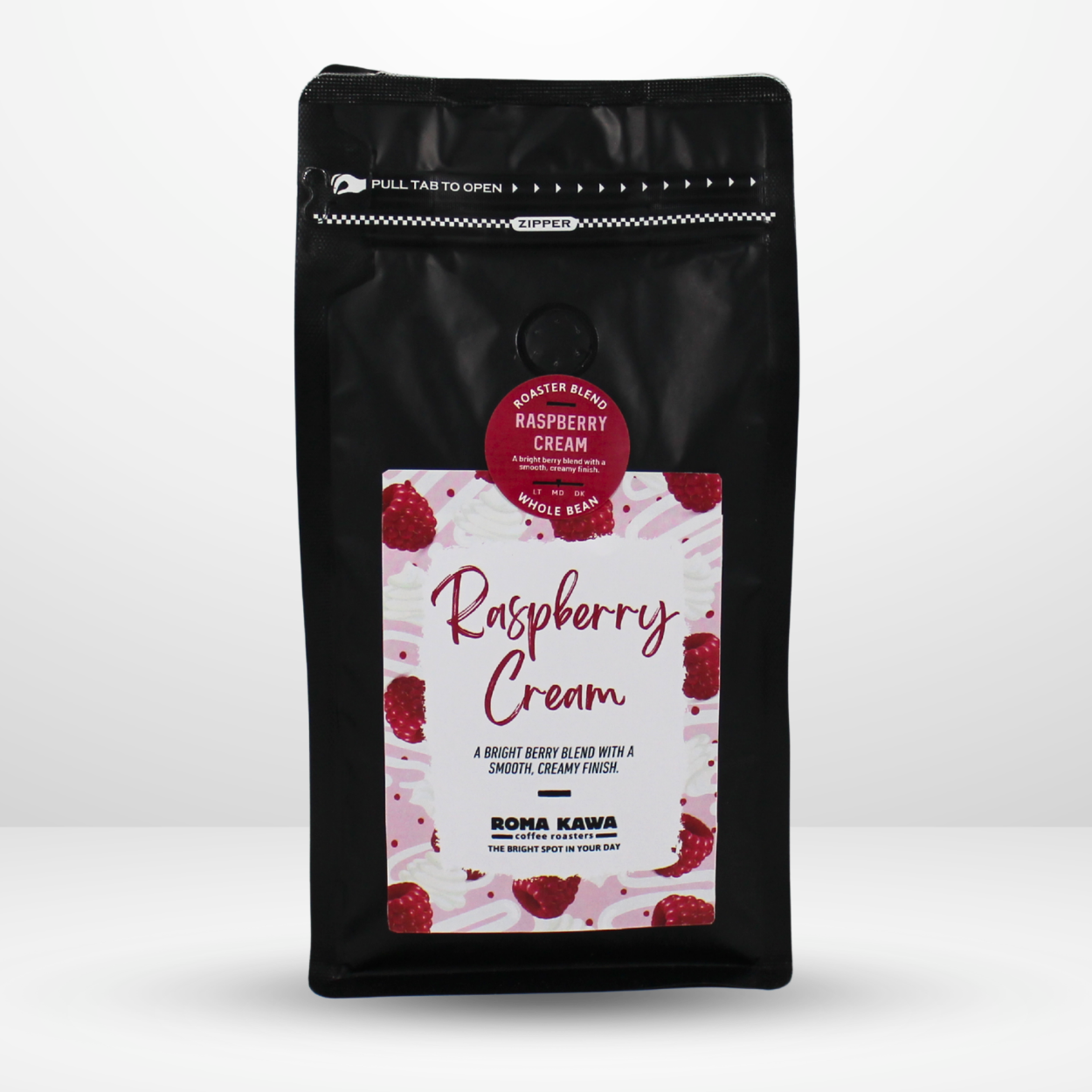 RASPBERRY CREAM: A bright berry blend with a smooth, creamy finish. Sweet raspberry is layered with silky vanilla and soft macadamia notes for a perfectly balanced cup.