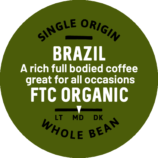 Enjoy our Organic Brazil coffee, a smooth and low-acid brew with delightful notes of chocolate and nuts. This consistently balanced cup is perfect for any time of day. Organic and Fair Trade Certified. Packaged in an environmentally friendly compostable bag.
